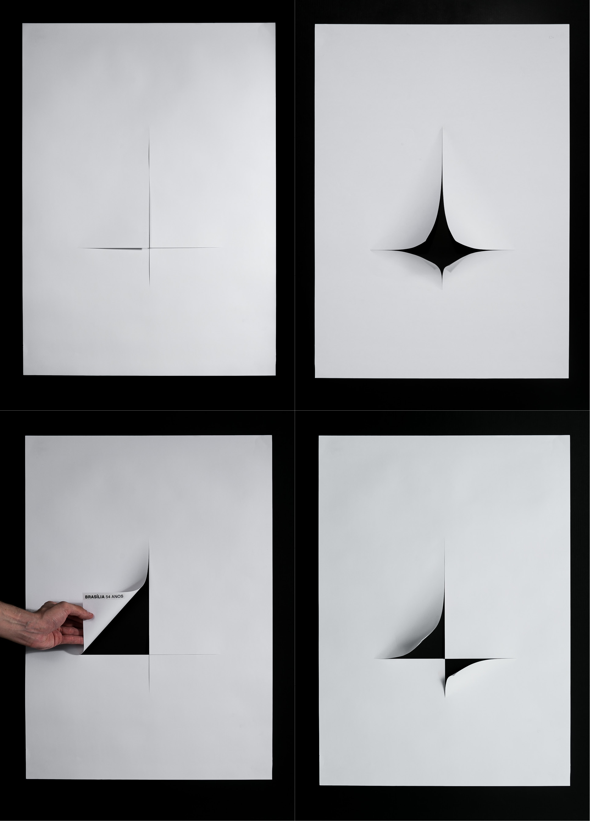 trata-se de incorporar na própria estrutura física do cartaz os sentidos de simplicidade e surpresa presentes em brasília.